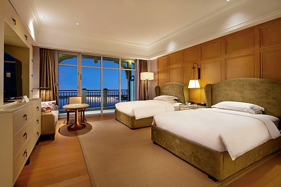 Accommodations span a broad mix of room types, from Deluxe options (King or Twin) with balconies and lake views or bathtubs, to Executive and Family configurations, and up to Presidential and Junior Presidential Suites. Many layouts are designed to accommodate groups, with several choices featuring lake views and private balconies to enjoy the scenery.